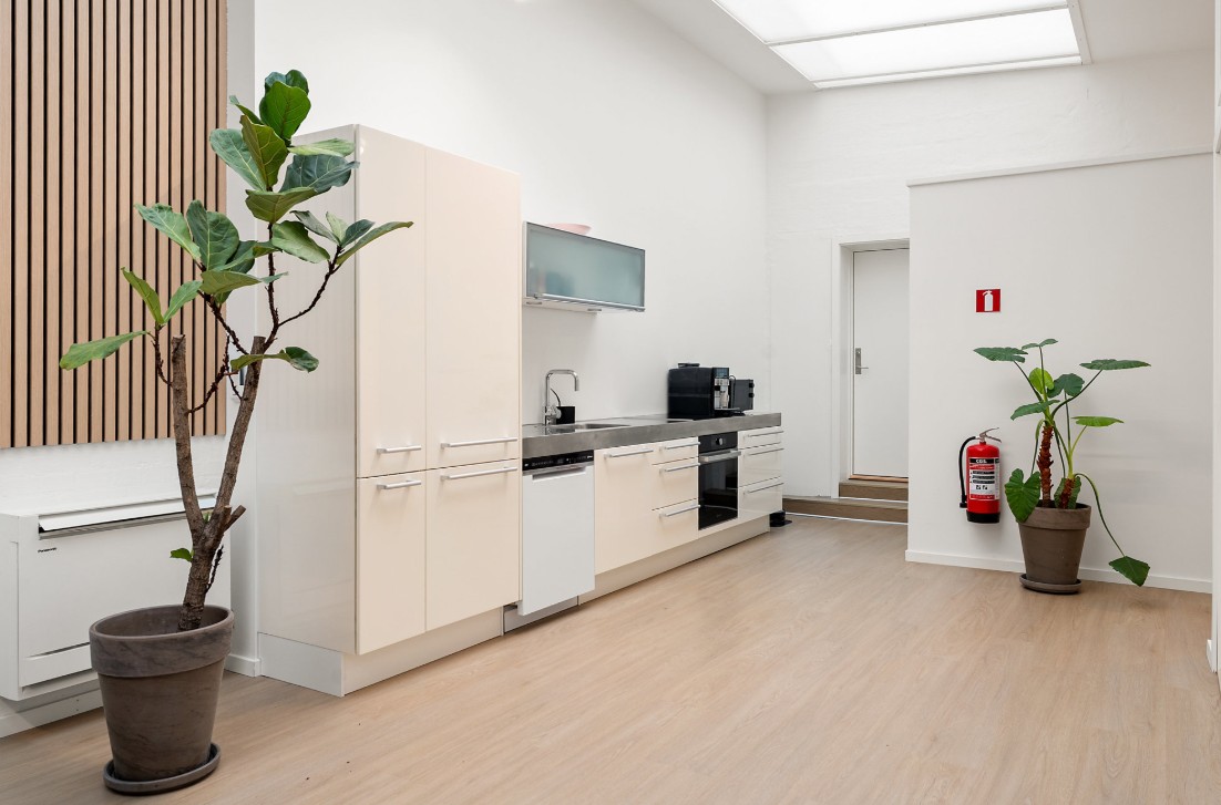 - Adgang til fælles køkken/kantine og mødelokale kan bookes i fællesskab med øvrige lejere