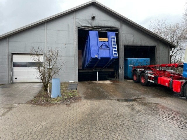 Tæt ved rute 57 udlejes en søjlefri 530 m2 stålhal fra 2011 med støbt gulv med 3 porte og 240/380 V strømforsyning.