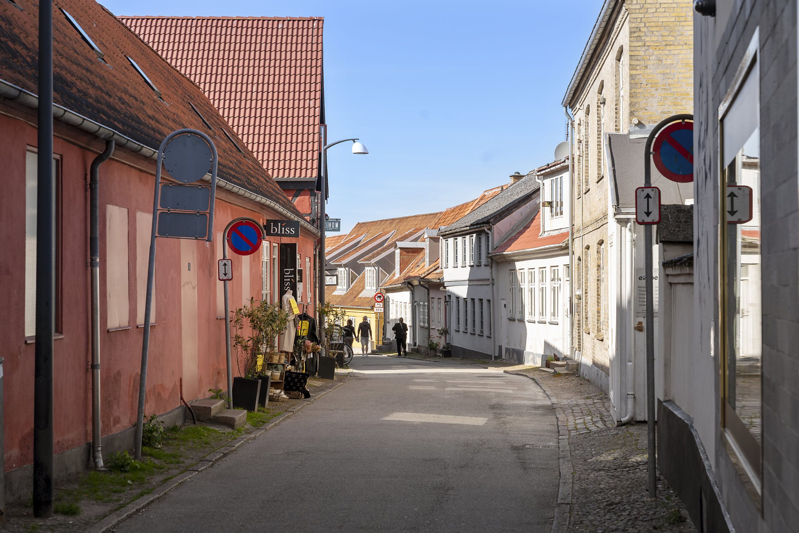 miljø i Holbæk i hjørneejendom til Ahlgade, der er Holbæks handelsgade.