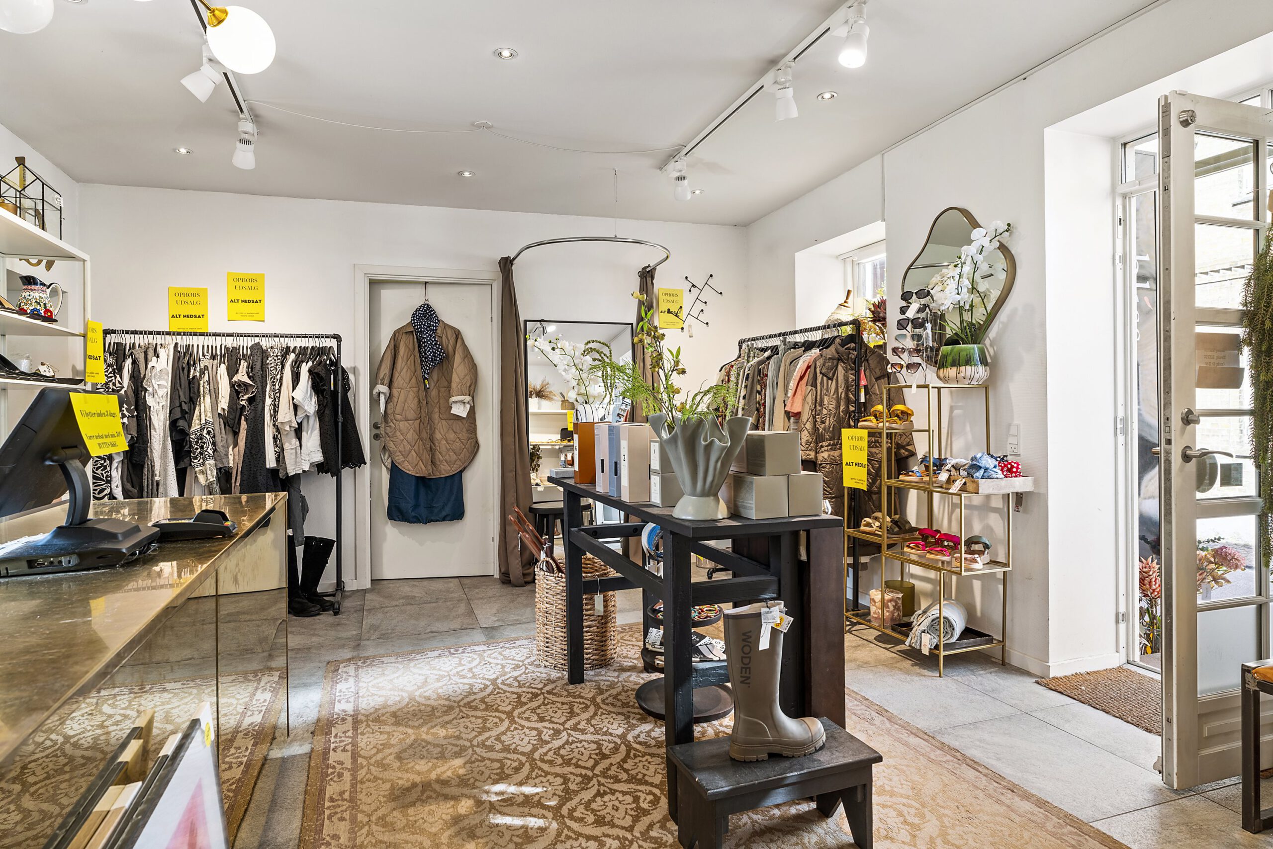 Lejemålet, der fremstår nyistandsat, indeholder et godt kontor-/butikslokale i stueplan, mellemgang